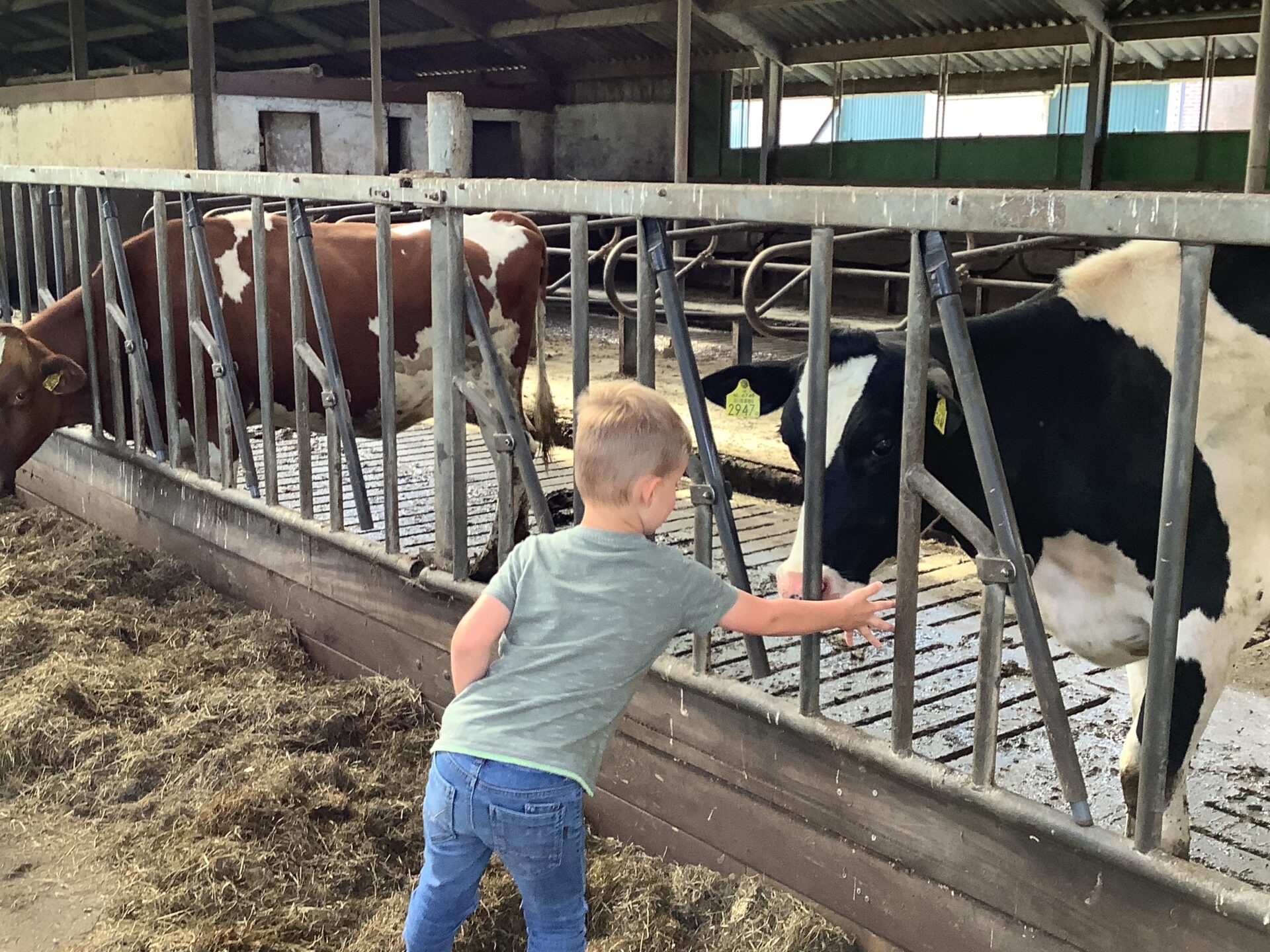 De Speelboerderij is duidelijk gescheiden van de agrarische bedrijfsactiviteiten. De kinderen kunnen kijken naar de trekker, shovel etc. achter een veilig hekwerk. De activiteiten met de kinderen op het agrarisch bedrijf, zoals het aaien van de koeien, lopen door de stal of een wandeling in het weiland, gaat altijd in overleg met Boer Rene.